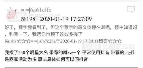 最近抖音上可是热闹非凡呢!那些网红们,一个个都像吃了兴奋剂似的,吃瓜泄密的节奏简直停不下来。这不,最近有个叫萝卜兔子的抖音网红,就因为一段视频,直接上位成了吃瓜界的“一姐”。今天,就让我带你来揭秘一下这位新晋网红的“上位之路”,还有那些让人瞠目结舌的网红大瓜。